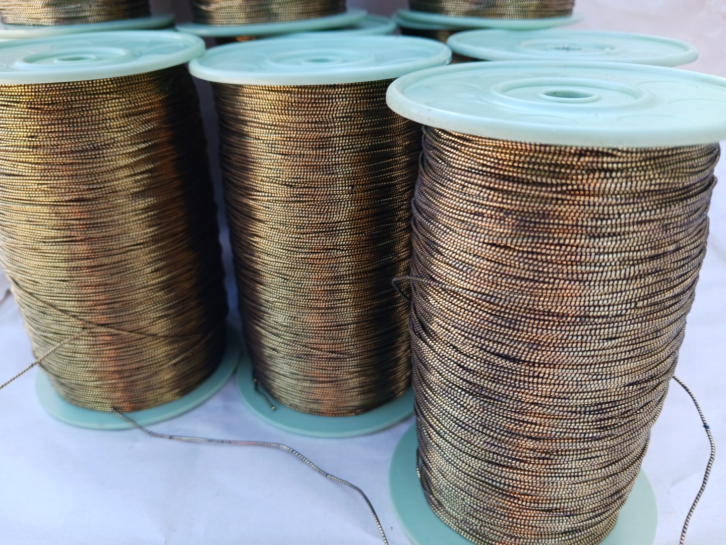 Aspect : Brillant, souple, fin ou semi-épais selon le titrage. Disponible en bobines anciennes, fils plats (laminettes) ou ronds.